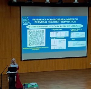 Objektif LatihanPengisian Daftar Bahan Kimia Format UKM adalah untuk memperkenalkan format senarai bahan kimia baharu dengan merujuk Pekeliling Pusat Pengurusan RIsiko, Keselamatan dan Kesihatan Pekerjaan (ROSH-UKM) Bil. 8/ 2024: Daftar dan Inventori Bahan Kimia UKM. Senarai baharu ini selaras dengan keperluan Peraturan 5 dan 25 di dalam USECHH 2000. Sesi ini melibatkan latihan praktikal oleh semua warga yang hadir agar mahir dan mematuhi tatacara yang betul di dalam pengisian senarai daftar bahan kimia baharu ini.