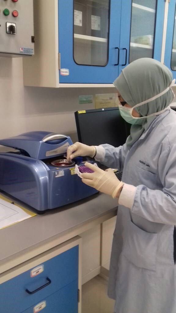 Rajah: Kakitangan UMBI melakukan penyaringaan polimorfisme HLA-B*15:02 dengan menggunakan teknik HRM-QPCR dan penjujukan DNA melalui kaedah Sanger.
