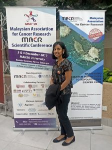 On the 3rd-4th of December 2019, two UMBI students (Shivapriya and Nur Syahada) attended the Malaysian Association of Cancer Research Conference 2019 held at MAHSA University. Shivapriya’s abstract was selected for an oral presentation, whereas Syahada’s abstract was for a poster presentation. We would like to congratulate Shivapriya for winning the Best Student Award (2nd prize) at the conference where she received a certificate and some cash prize. Congratulations and keep up the good work!