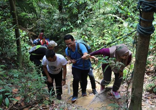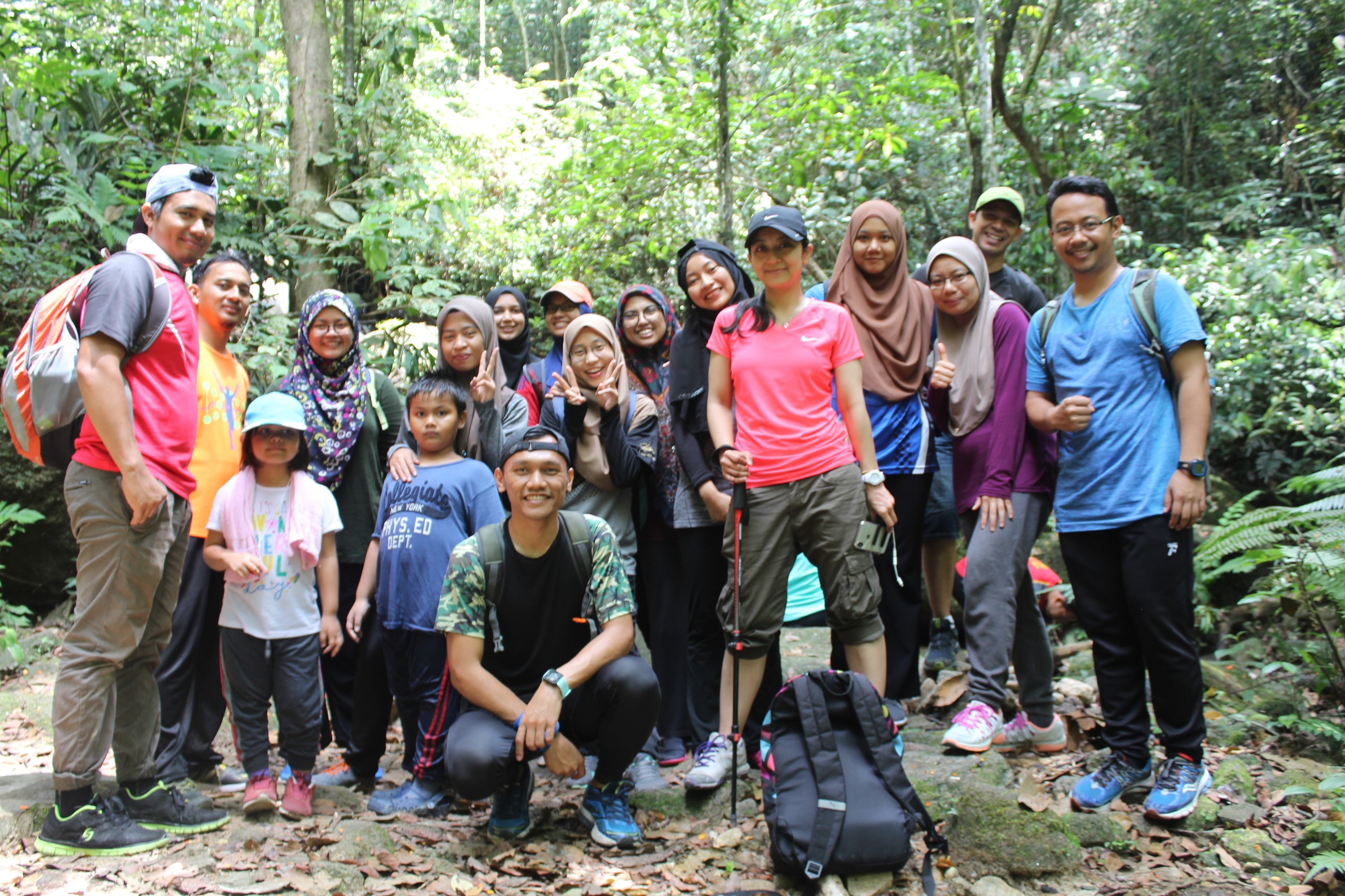 UMBI’s Welfare and Recreation Committee had recently organised a hiking programme themed “Let’s Explore The Nature” at Bukit Saga, Ampang on a beautiful Saturday morning, 24th March 2018. The outdoor activity was part of our effort in promoting healthy lifestyle among UMBIans. We are also seeing friends and families joined in the fun to get their heart pumping and feet moving! The hiking track was considered an easy route and suitable for beginners. All particpants gathered at the foothill of Bukit Saga at 7.45am for a warming up session before starting the hike at an easy pace. We have stopped at the beautiful waterfall as the halfway point to have some rest, eat some lunch and enjoy the scenic view.