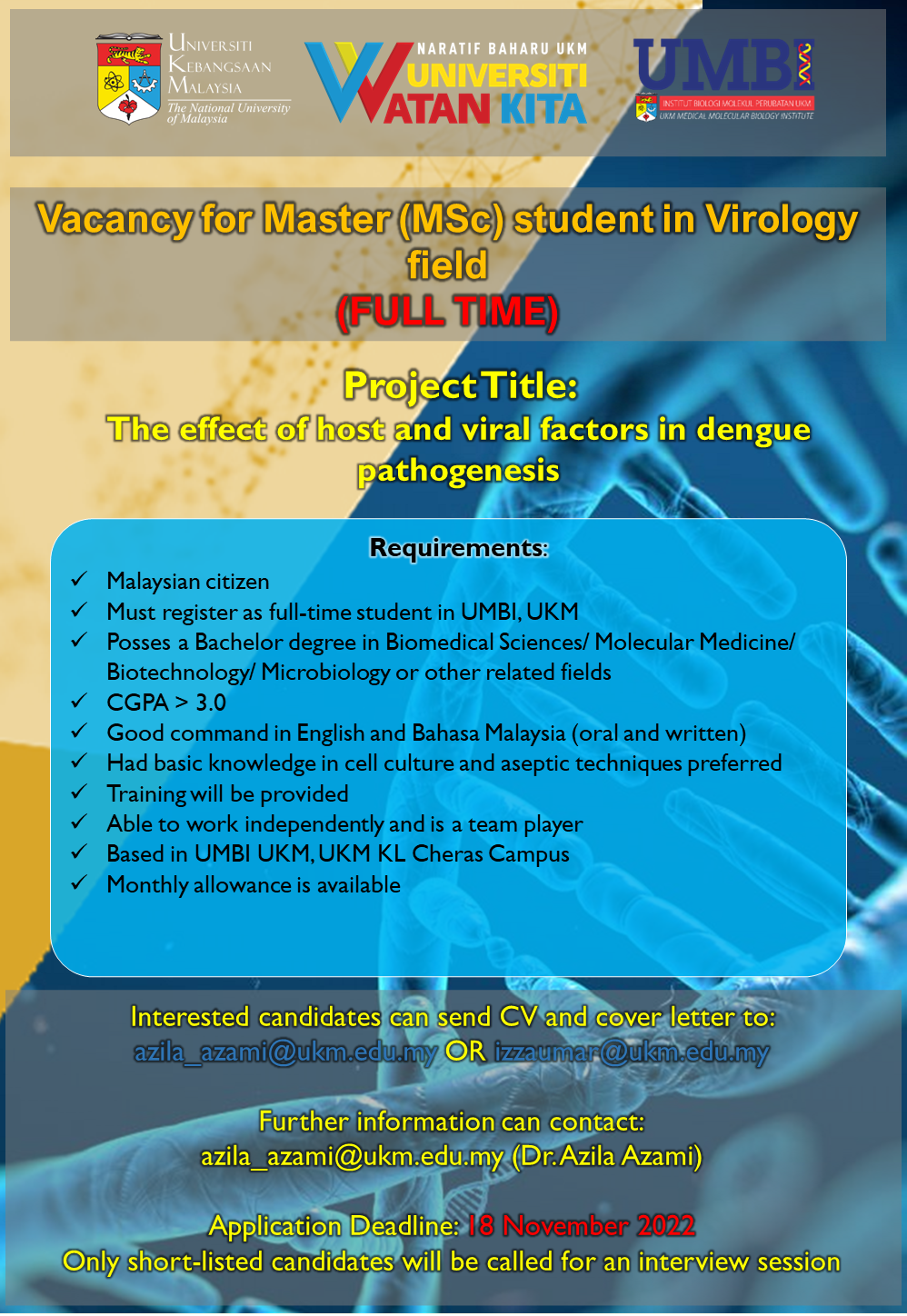 - Posses a Master degree in Biomedical Sciences/ Molecular Medicine/ Biotechnology/ Microbiology or other related fields