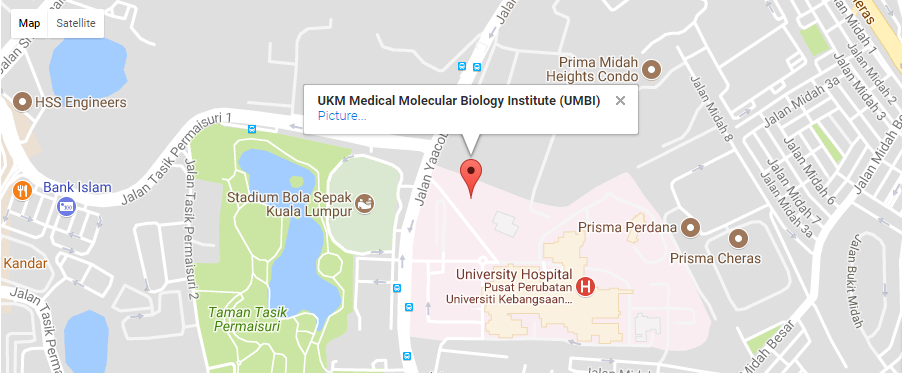 GOOGLE MAP: https://goo.gl/maps/soeAgH9K4292The Hands-on Intermediate Statistical Analysis Workshop conference will be held at Bioinformatic Lab, UKM Medical Molecular Biology Institute (UMBI), Kuala Lumpur that is located just a 15-minute drive away from the heart of Kuala Lumpur city centre. For more information about the venue, please visit the UMBI website here.