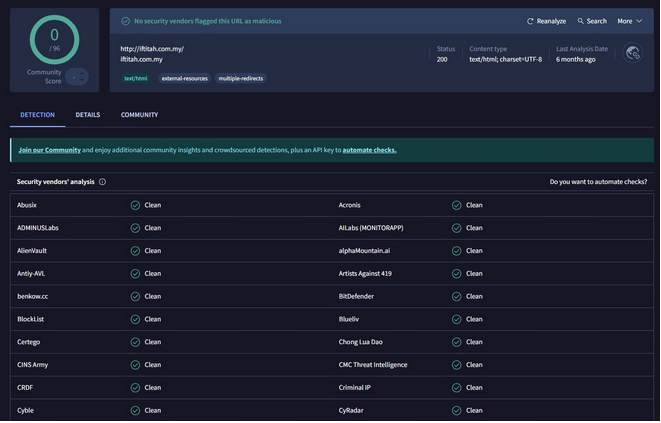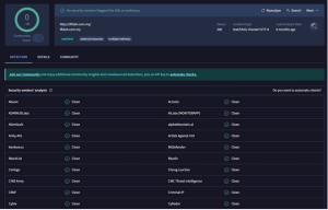 β’ Sistem akan memaparkan laporan lengkap sama ada fail atau URL itu berbahaya atau tidak berdasarkan keputusan dari pelbagai enjin antivirus.Kegunaan: