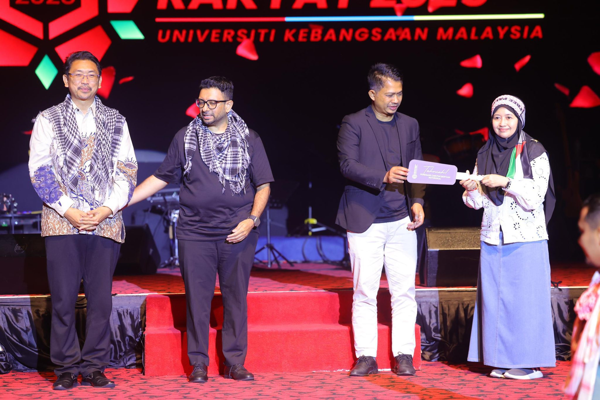 Konsert MAWAR 2025 turut dihadiri oleh Prof Ts. Dr. Faizal Mohamed, yang menjalankan Fungsi Timbaan Naib Canselor Hal Ehwal Jaringan Industri dan Masyarakat, merangkap Pengerusi Konsert MAWAR 2025; Prof Ts. Dr. Norinsan Kamil Othman, menjalankan Fungsi Timbalan Naib Canselor Hal Ehwal Pelajar dan Alumni; Bendahari UKM, Tuan Hj Mohd Azli Mohd Kasirun dan Pengarah Pusat Kebudayaan, En Mohamed Asrof Semin.