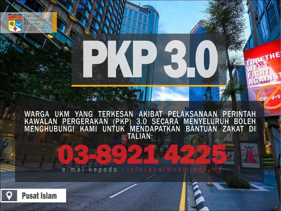 Pihak Zakat UKM prihatin dengan keadaan warga yang terkesan akibat (PKP 3.0) ini. Sekiranya terdapat warga universiti yang memerlukan bantuan atau mempunyai maklumat berkaitan rakan siswa/ staf yang ditimpa masalah. Maklumat tersebut boleh disalurkan melalui emel: infozakat@ukm.edu.my atau hubungi Kaunter Zakat Bangi di talian 03-8921 4225 / 5820