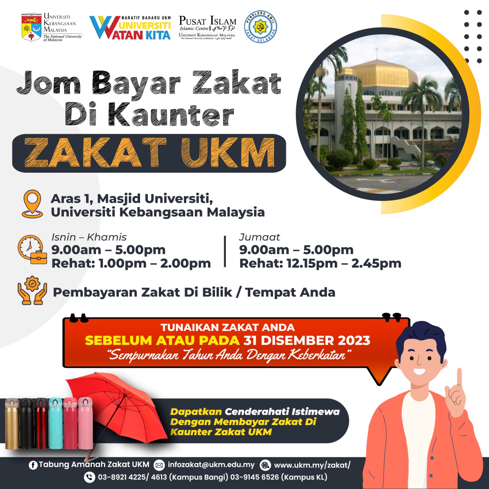 Justeru, Zakat Universiti mempelawa kepada semua Warga UKM & pembayar zakat yang menepati syarat wajib zakat harta untuk Hadir ke Kaunter Zakat UKM.