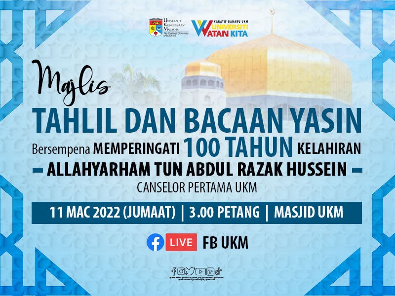MAJLIS TAHLIL & BACAAN YASSIN BERSEMPENA MEMPERINGATI 100 TAHUN KELAHIRAN ALLAHYARHAM TUN ABDUL RAZAK CANSELOR PERTAMA UKM