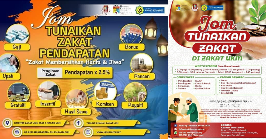 Zakat UKM selaku Penolong Amil IPT Lembaga Zakat Selangor mempelawa kepada semua orang ramai untuk menunaikan kewajipan zakat di Kaunter Zakat UKM. Bagi menyempurnakan ibadah …