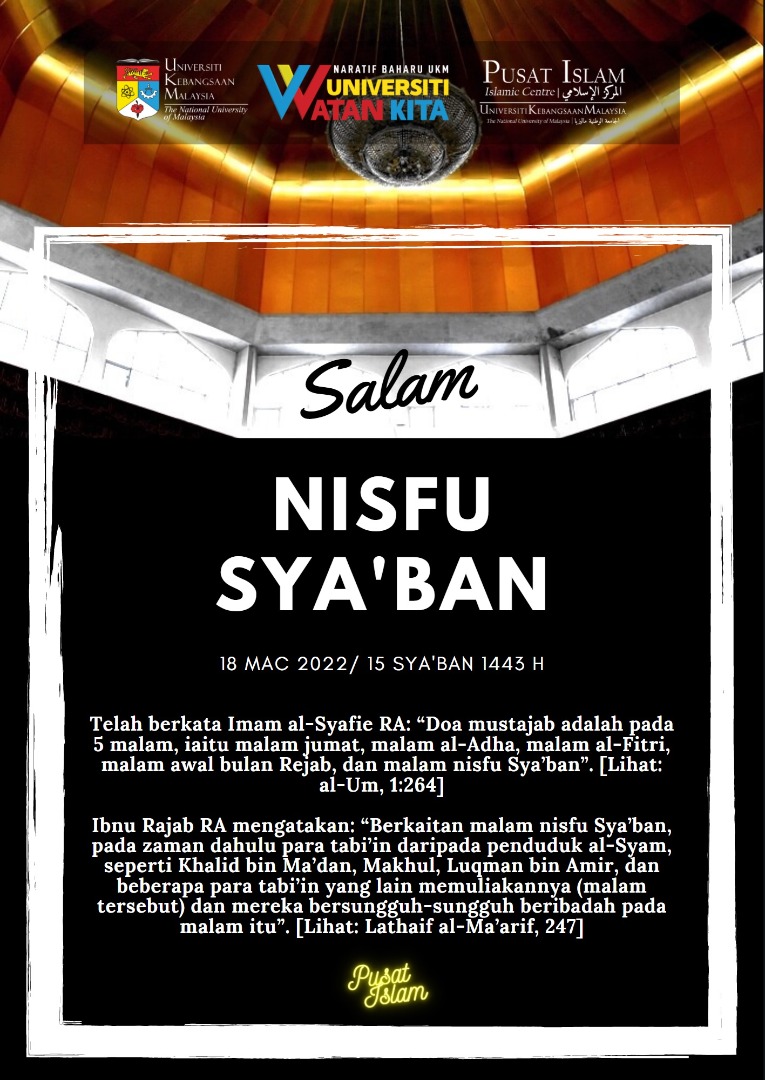 Warga Pusat Islam Universiti mengucapkan Salam Nisfu sya’ban & selamat menambah amalan kepada seluruh Warga Universiti & masyarakat.